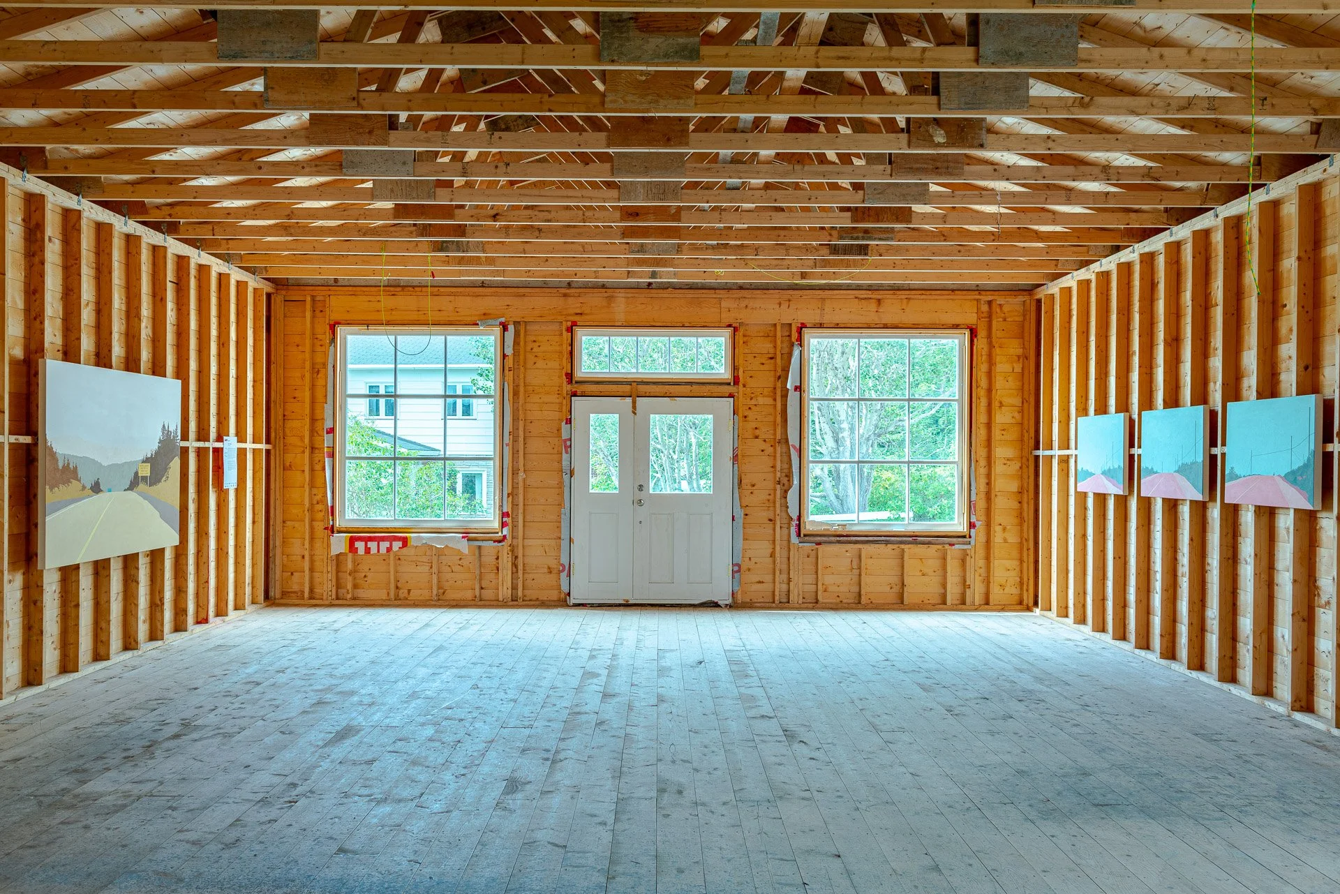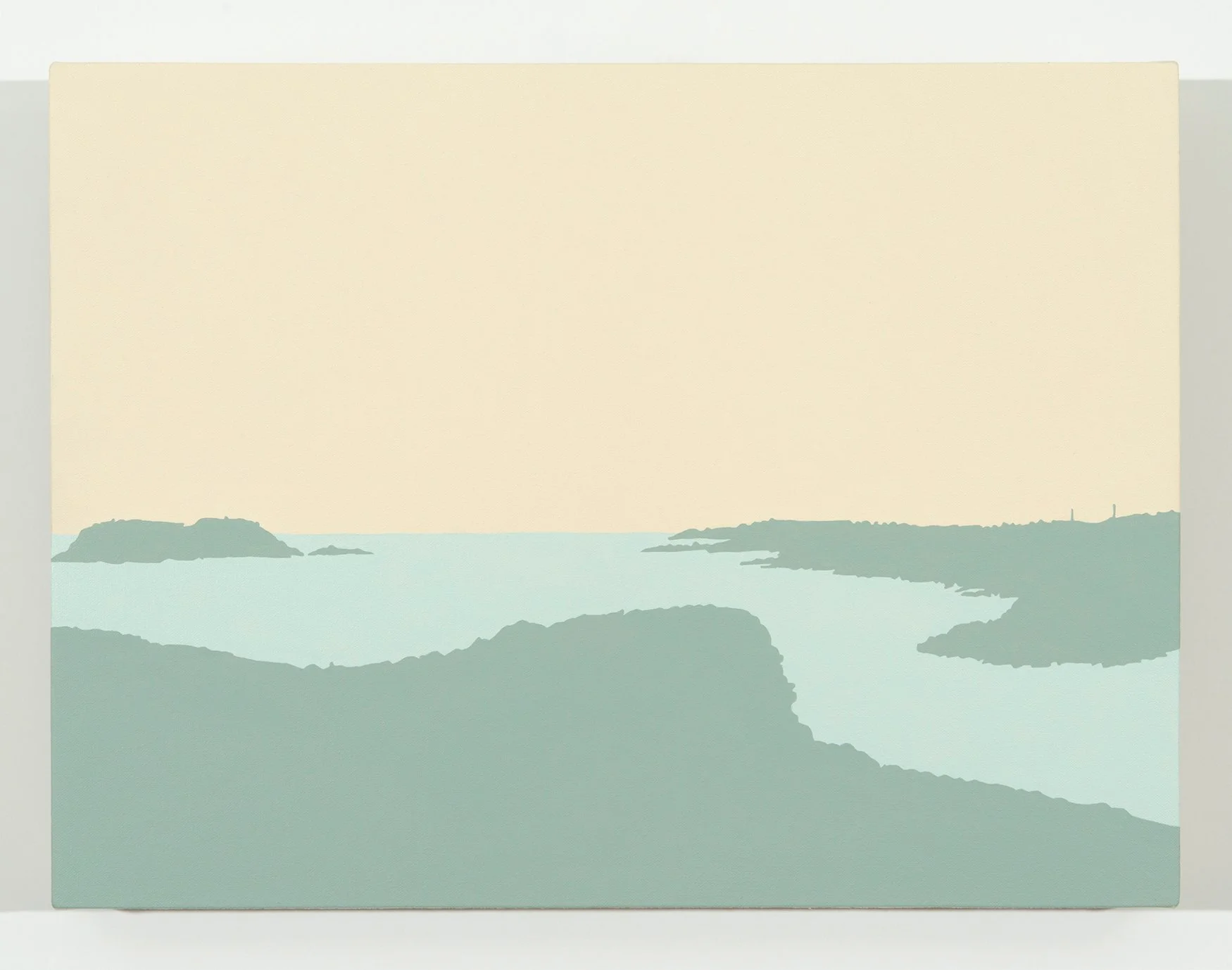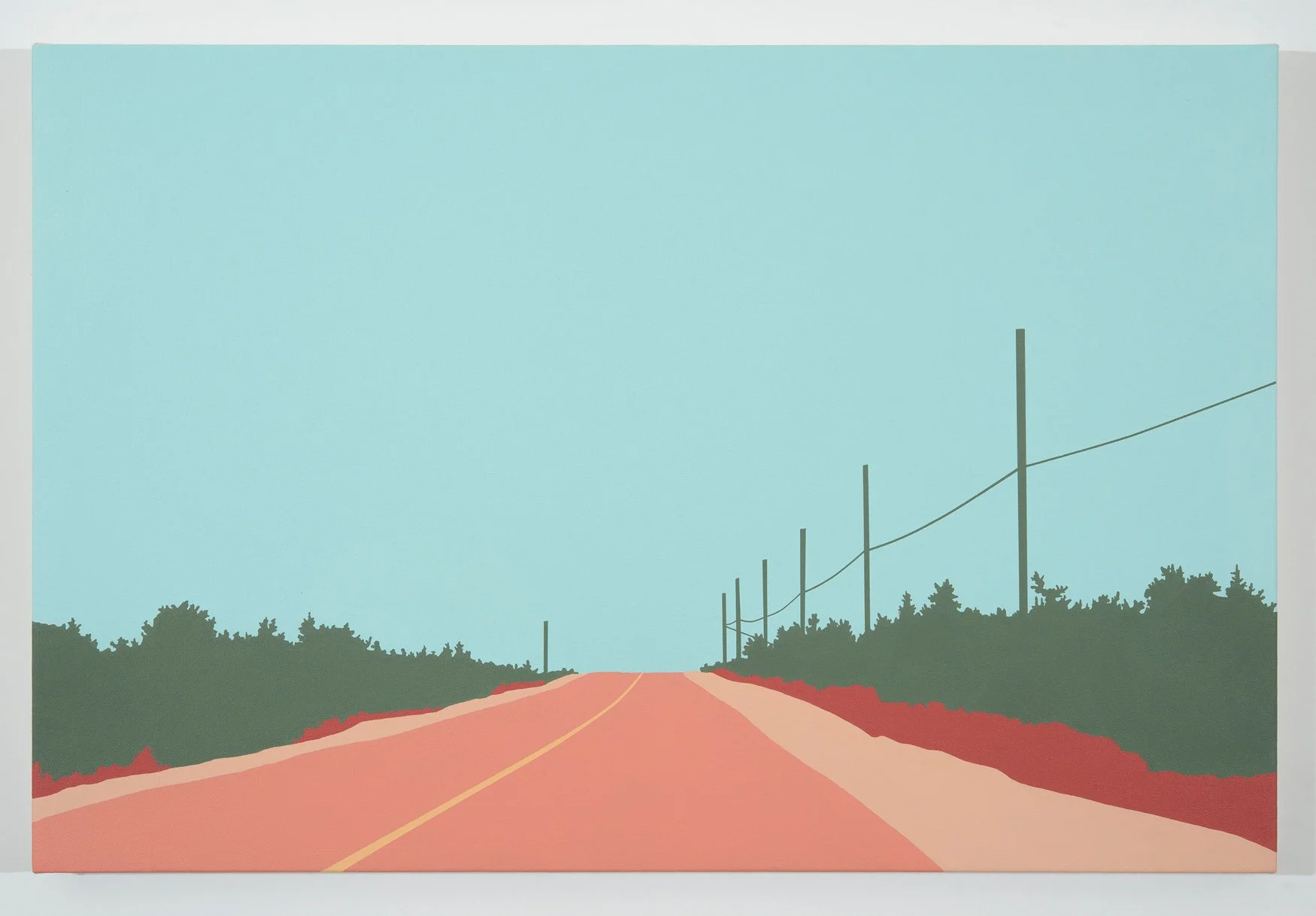 Travelling to the Bonavista Peninsula, I documented the landscape with a high-resolution camera mounted on the dashboard of my car. Using the fixed perspective of the windshield as a compositional frame, the images were the source material for each painting. It is important to me that my images depict how I think modern people move through the landscape. I think fish, boats, icebergs and idealized caricatures of Newfoundland traditions dominate the visual representations of this province. As a contemporary artist, I want to develop new visual narratives about the land I call home and how we move from point A to point B. I reflect on these new narratives in my work by exploring what I think is the true modern experience of a place as seen through the window of a car and the lens of a cell phone camera.